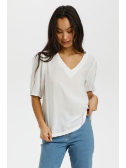 Top fluide uni ivoire encolure en v